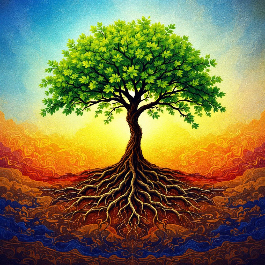 Un organismo vivo, un árbol, que representa su papel en el aumento de la entropía. Los sistemas vivos mantienen el orden mediante un flujo constante de energía.