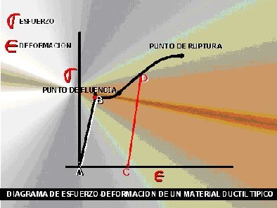 Las deformaciones causadas en una barra de acero sujeta a tensión desaparecen al remover la carga de tensión. El material tiene un punto de fluencia bien definido, limite elástico, punto en el que el proceso es reversible por lo que no hay deformaciones permanentes. El material se comporta elástica y linealmente si el esfuerzo se mantiene debajo del punto de fluencia. Sin embargo, si se llega al límite de fluencia, el material sufre deformaciones aun cuando se suspenda el incremento de carga. Sobrepasado el límite elástico, las deformaciones ya no son lineales con respecto a la carga.