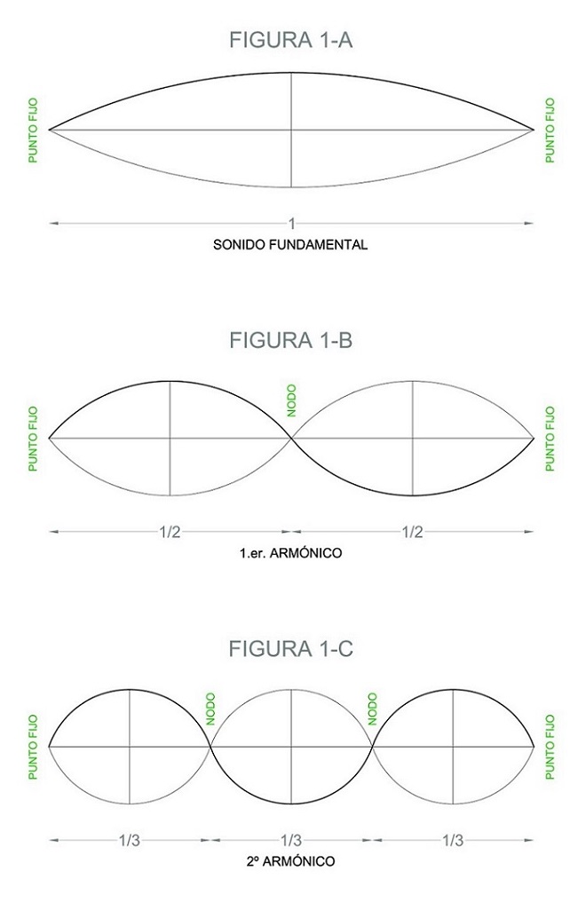 En la teoría de la música estas sucesivas ondas estacionarias reciben el nombre de sonidos armónicos. La serie ilimitada de estos armónicos, partiendo del “sonido fundamental” de la unidad original completa, definen de forma muy precisa los diferentes grados de vibración sonora, es decir, la jerarquía íntegra de niveles de estabilidad del flujo musical.