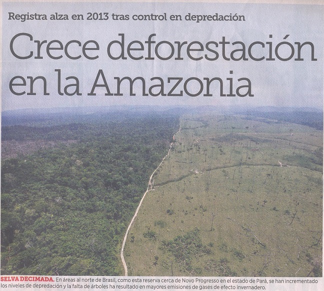Después de una década de grandes avances en detener el ritmo de deforestación, la depredación de la selva se incrementó en 2013 y; por los datos preliminares de este año, aumentará aún más. Expertos y políticos han criticado que el Gobierno federal brasileño conocía los datos más recientes de deforestación desde hace al menos un mes, pero evitó revelarlos para que no impactaran negativamente en la segunda vuelta de la elección presidencial de octubre pasado, cuando la Presidenta Dilma Rousseff ganó un segundo mandato de cuatro años. |